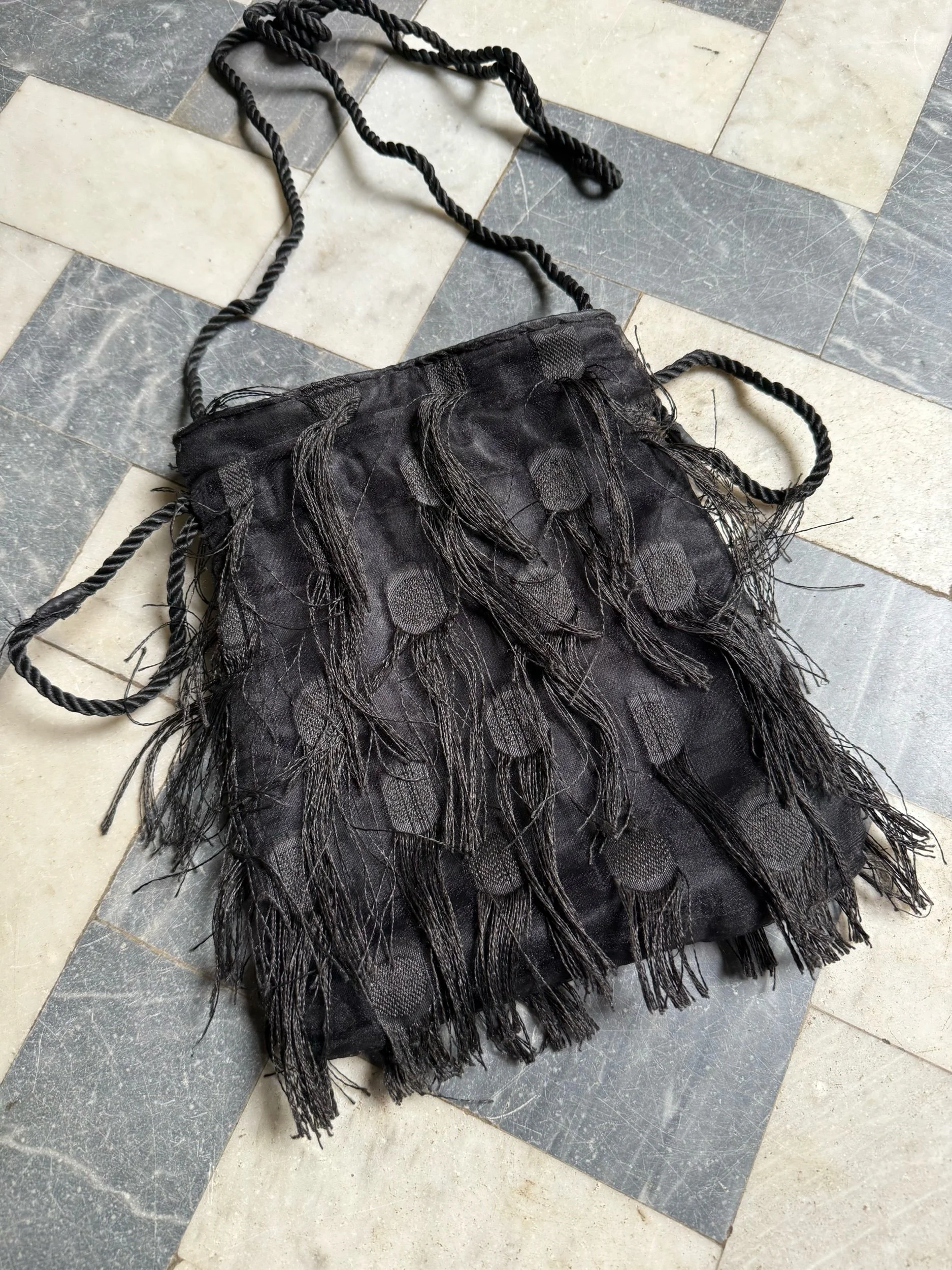 Shop › ⭑ Fringe Dotted Mini Bucket Bild 1 av 4 Bild 2 av 4 Bild 3 av 4 Bild 4 av 4 ⭑ Fringe Dotted Mini Bucket 549,00 kr Brand: VintageColor: BlackMaterial: ClothMeasurements: 19 × 22 cmCondition: 9/10 ⭑ One of a kind!⭑ Fits a phone Yes Please! Klart! Brand: VintageColor: BlackMaterial: ClothMeasurements: 19 × 22 cmCondition: 9/10 ⭑ One of a kind!⭑ Fits a phone
