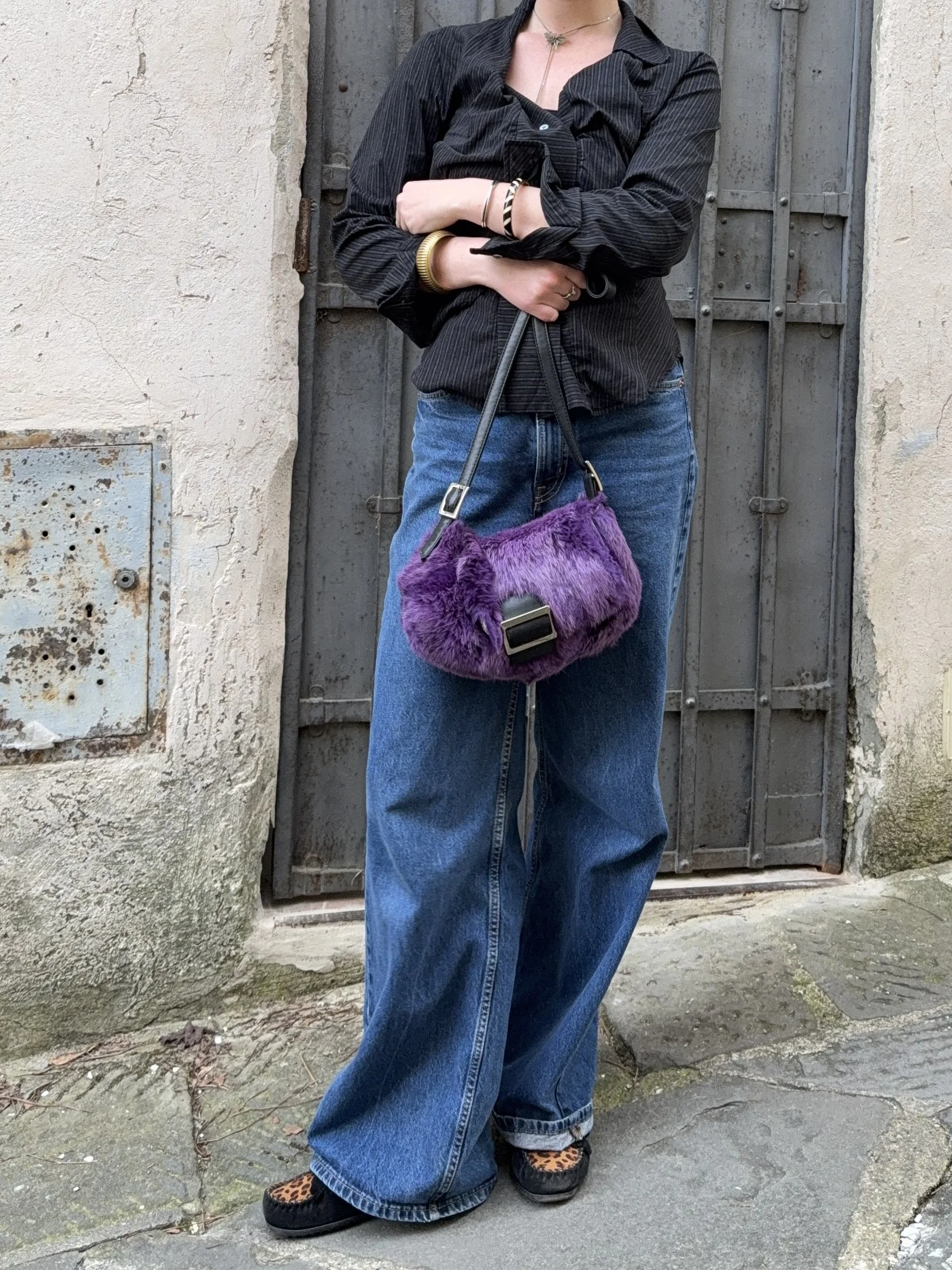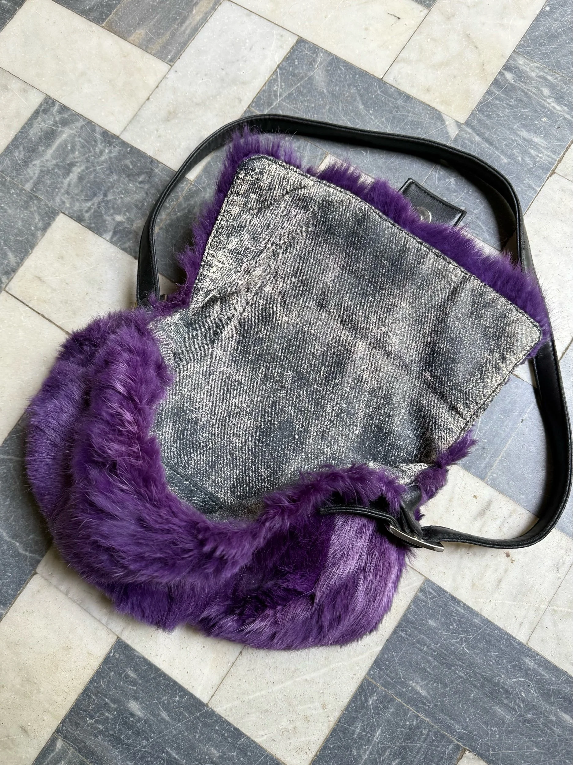Material: Real Fur (rabbit) & Faux Leather details