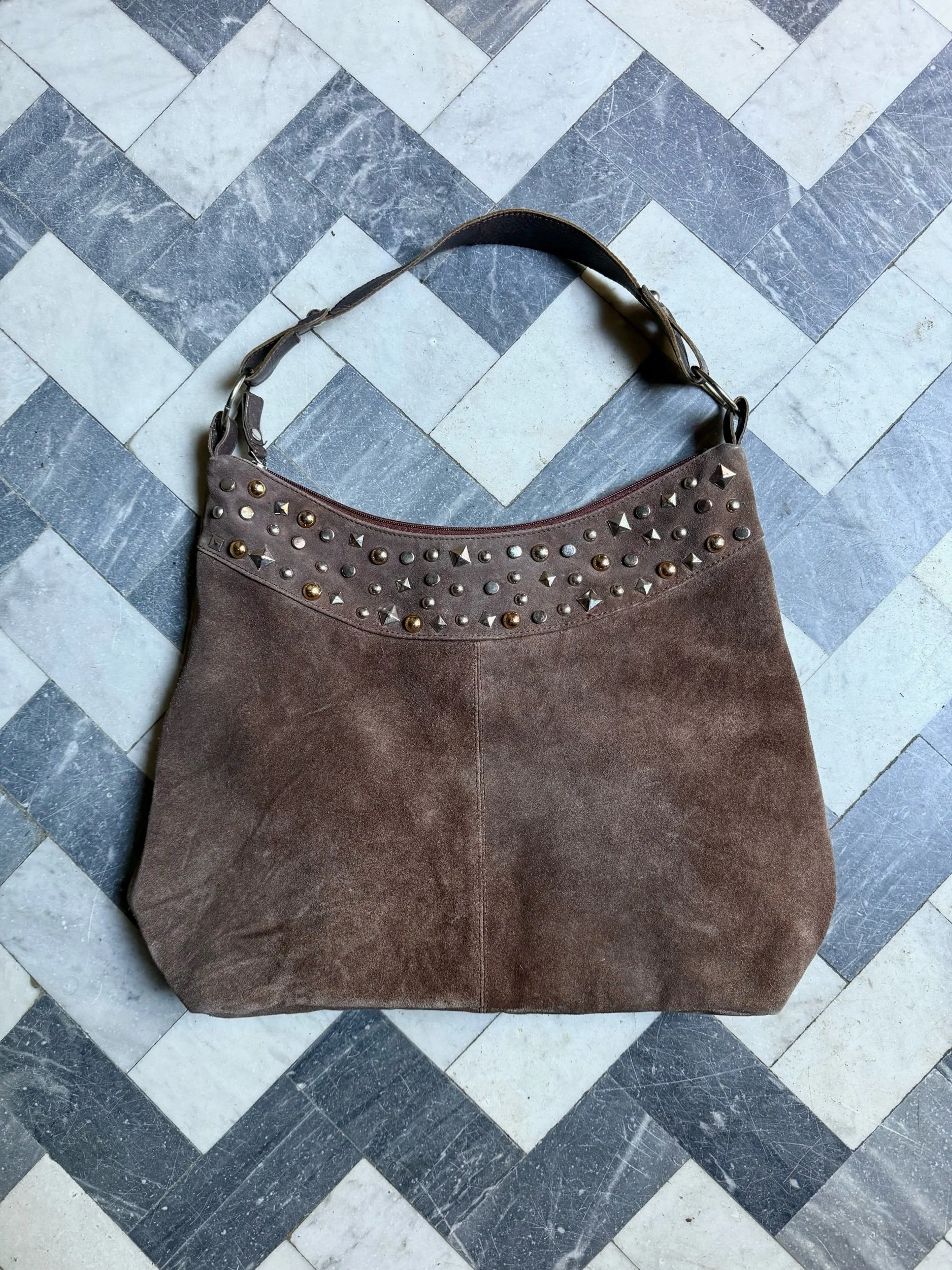 Mixed Stud Suede Hobo