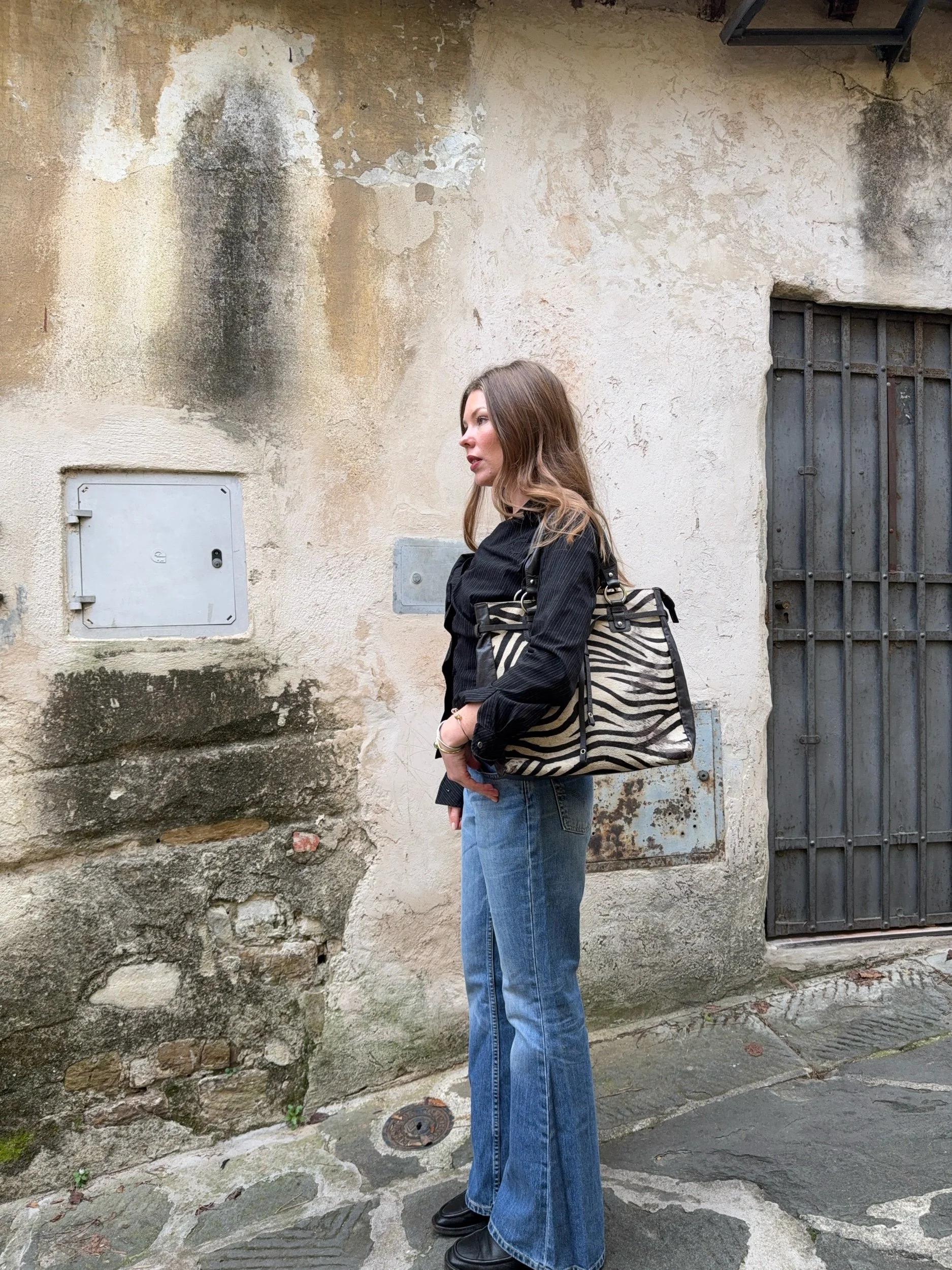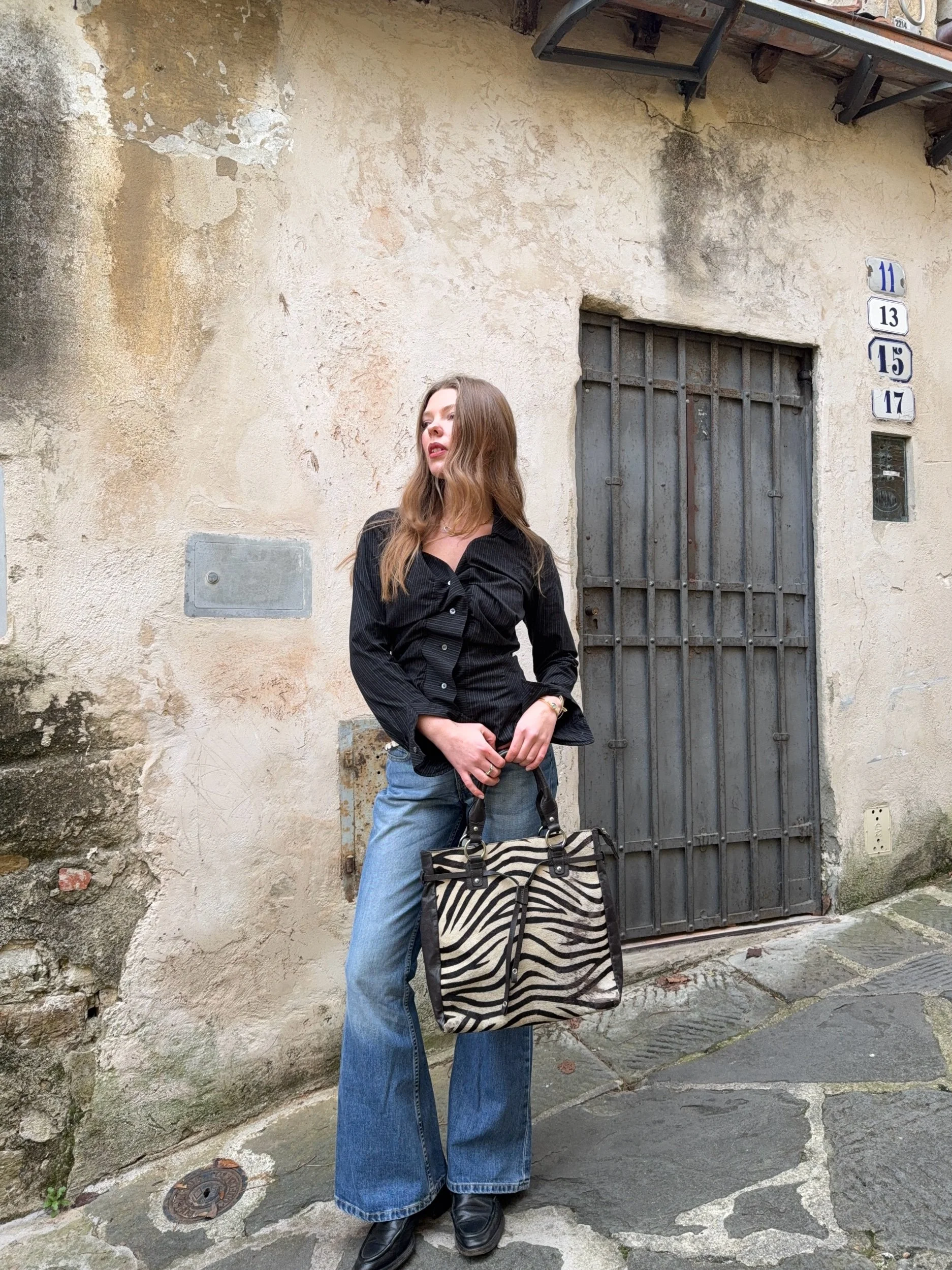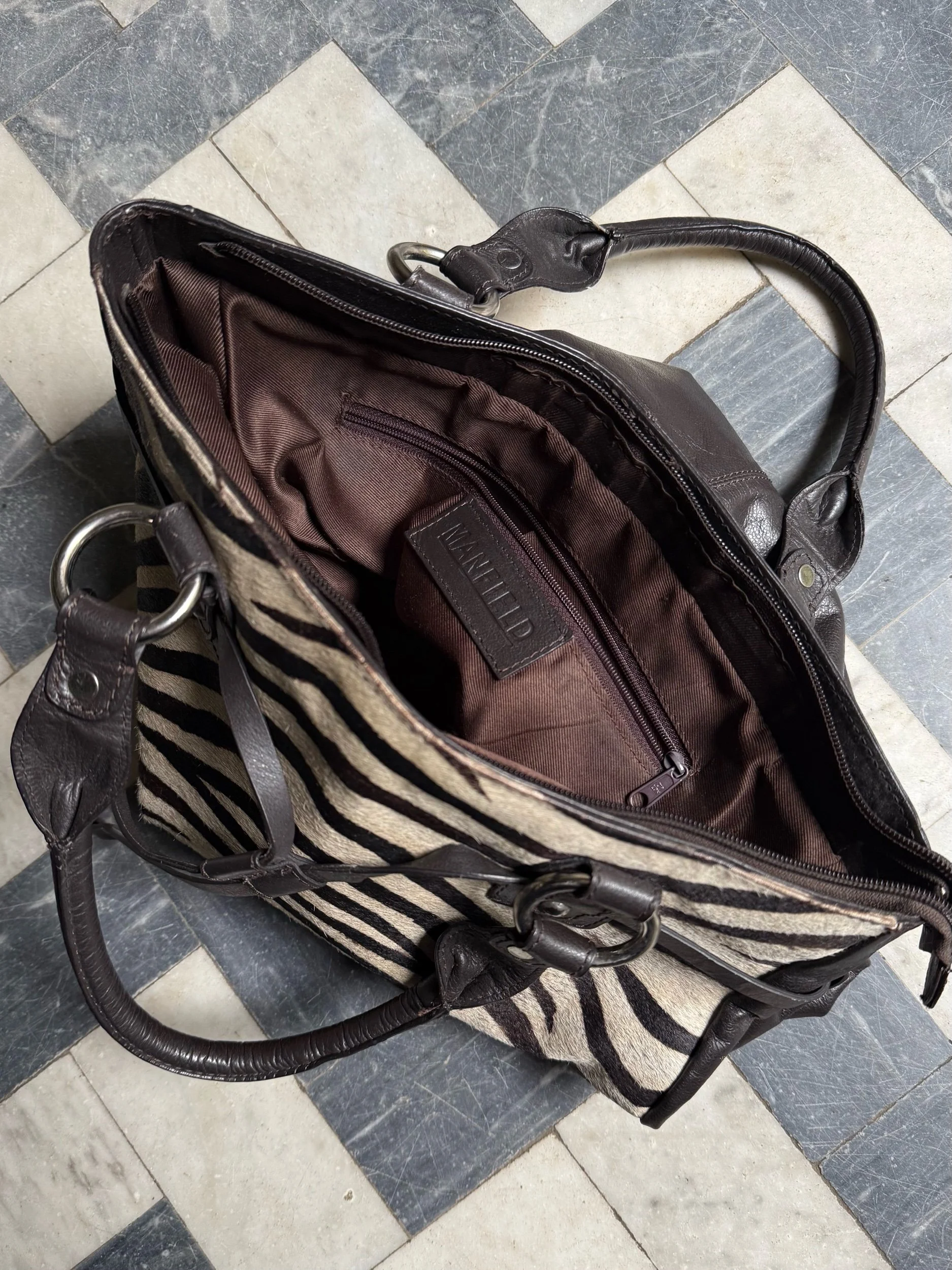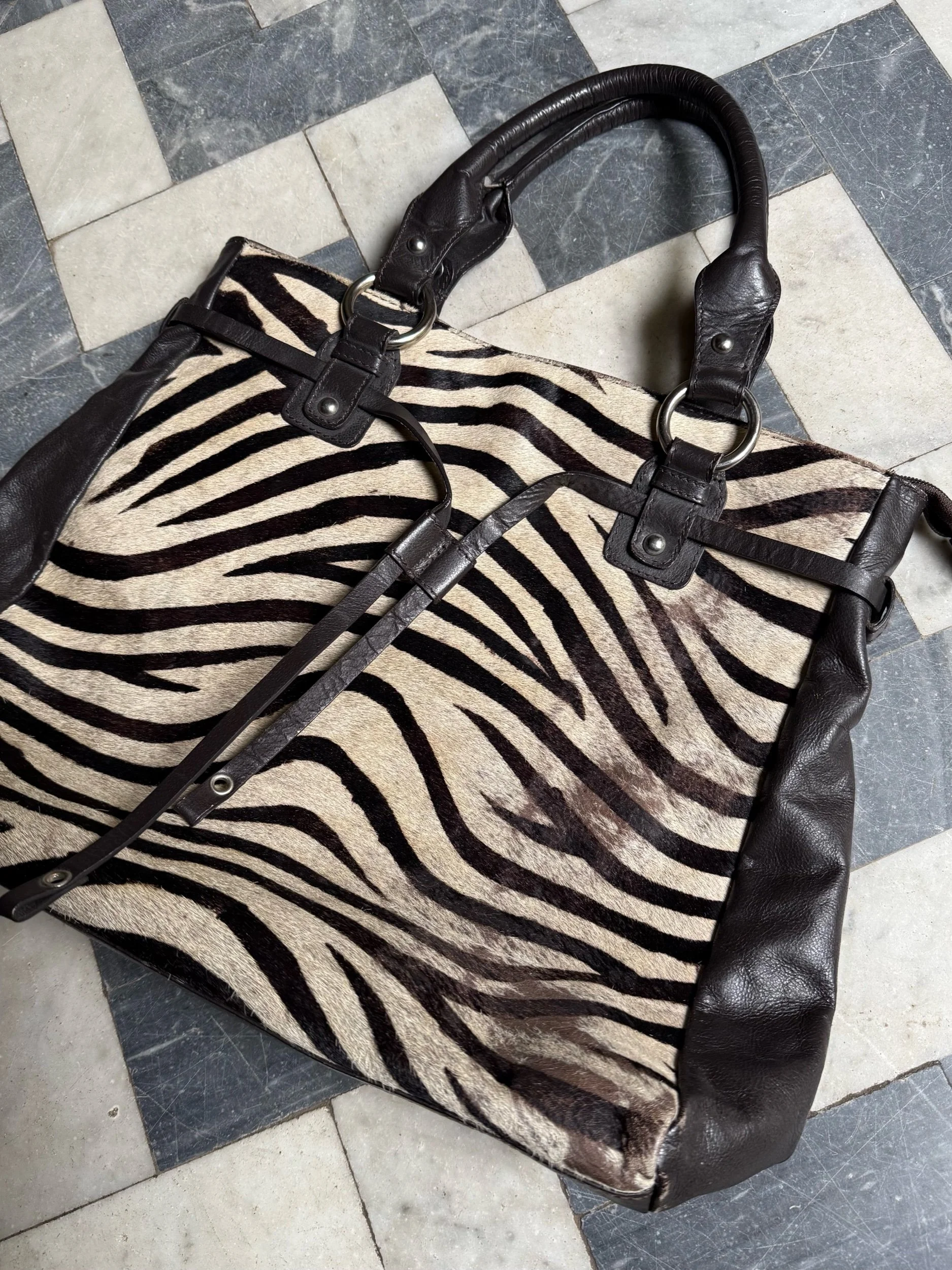 Skick: 8/10 - Kommentar: mindre slitage förekommer i lädret/ponyhair-delarna (hörn, axelband)