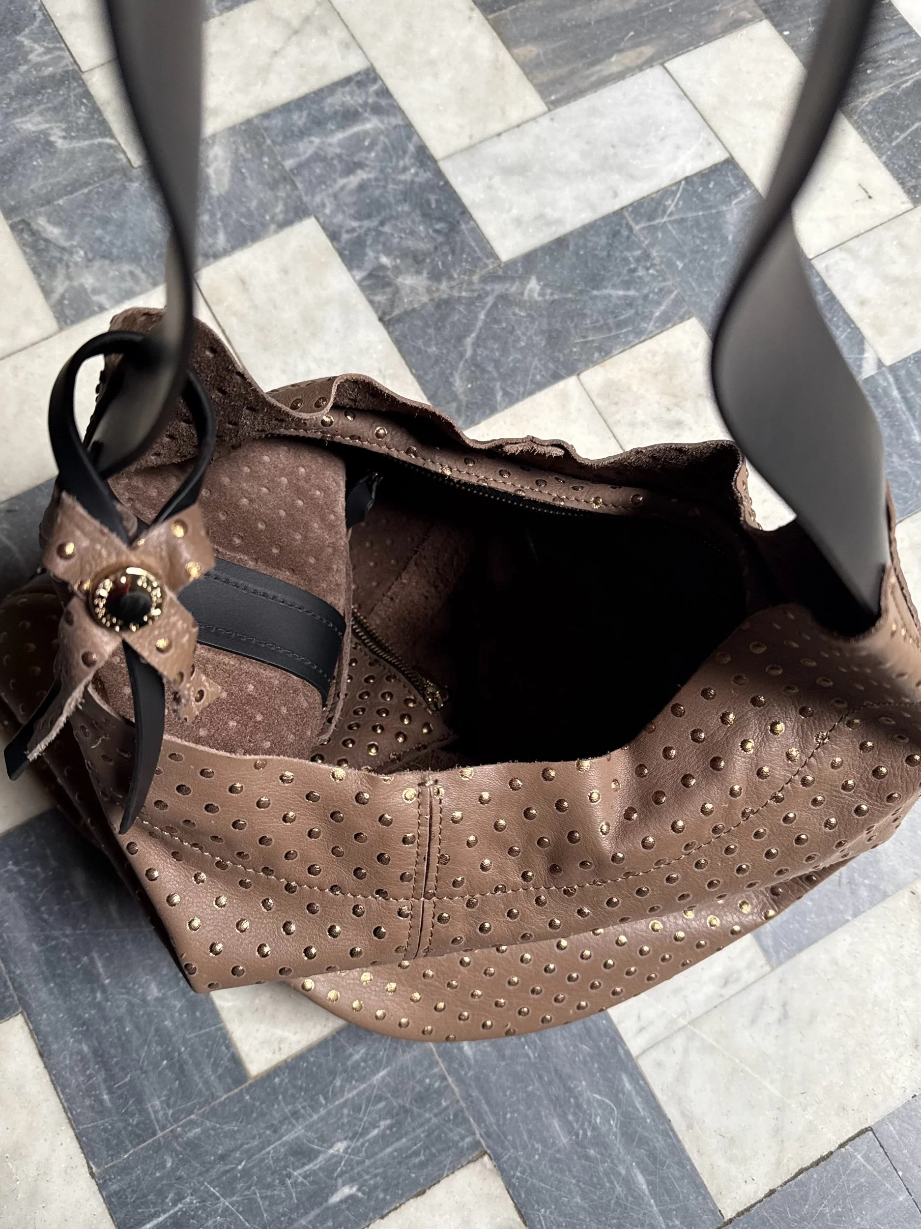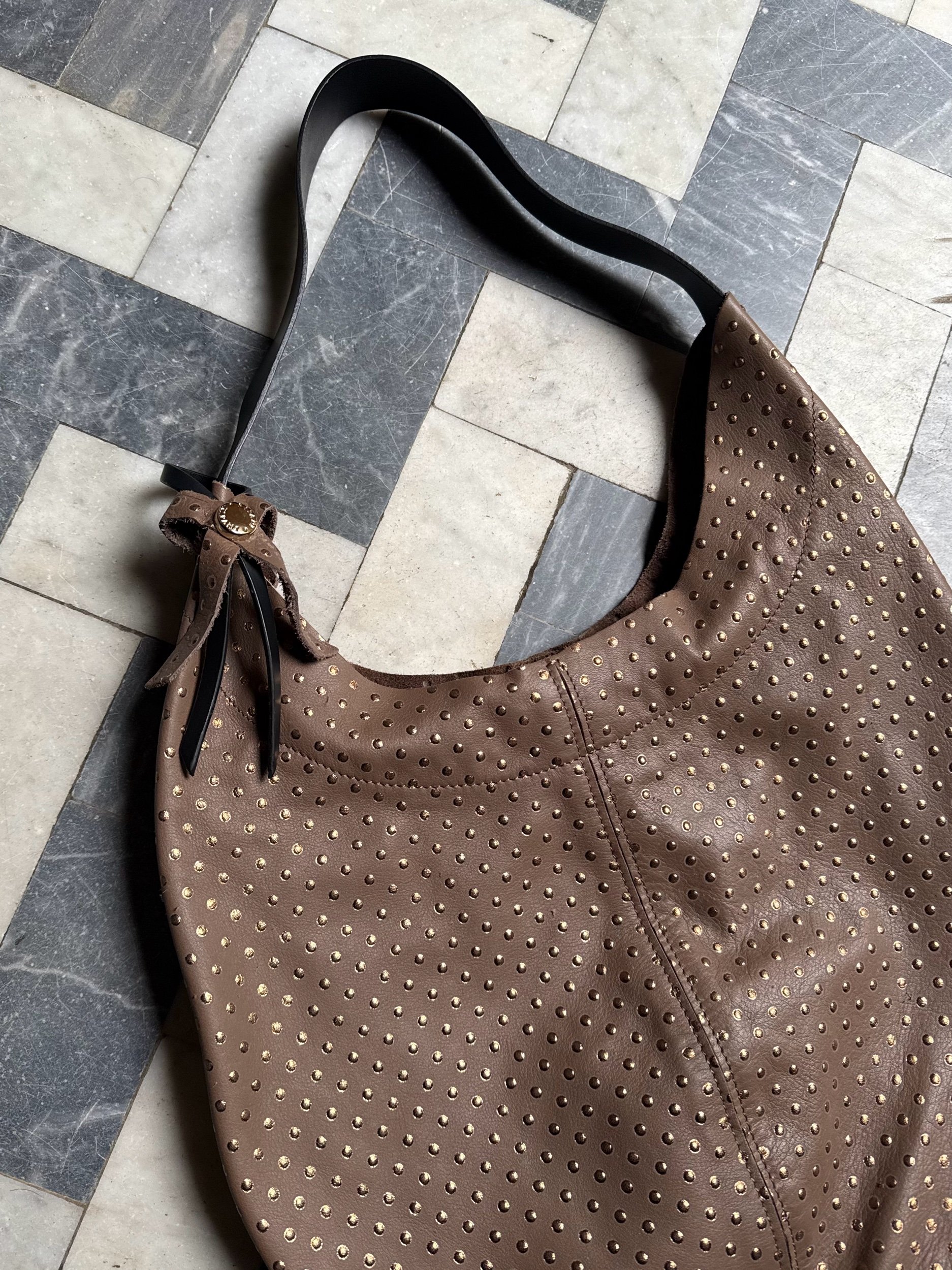 Shop › Shimmer Dotted Hobo Bild 1 av 6 Bild 2 av 6 Bild 3 av 6 Bild 4 av 6 Bild 5 av 6 Bild 6 av 6 Shimmer Dotted Hobo 999,00 kr Märke: RipaniFärg: Brun & GuldMaterial: LäderMått: 38 × 32 x 5 cmSkick: 9/10⭑ One of a kind!⭑ Rymmer MacBook Yes Please! Klart! Märke: RipaniFärg: Brun & GuldMaterial: LäderMått: 38 × 32 x 5 cmSkick: 9/10⭑ One of a kind!⭑ Rymmer MacBook