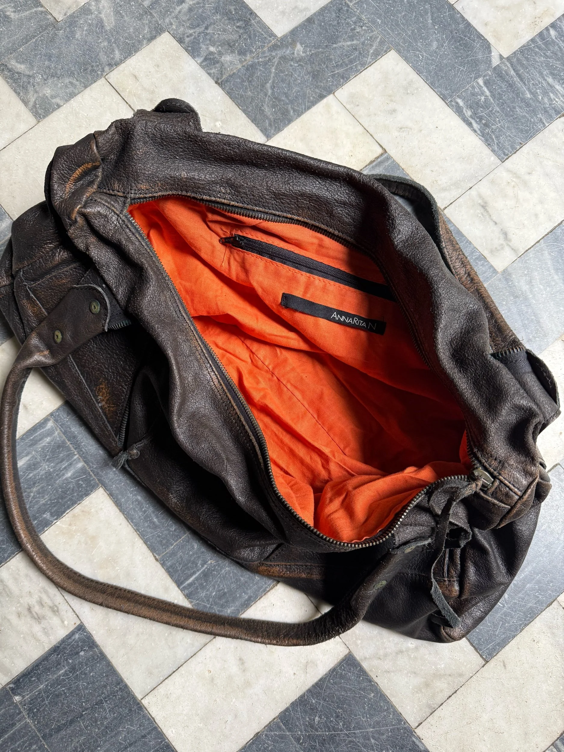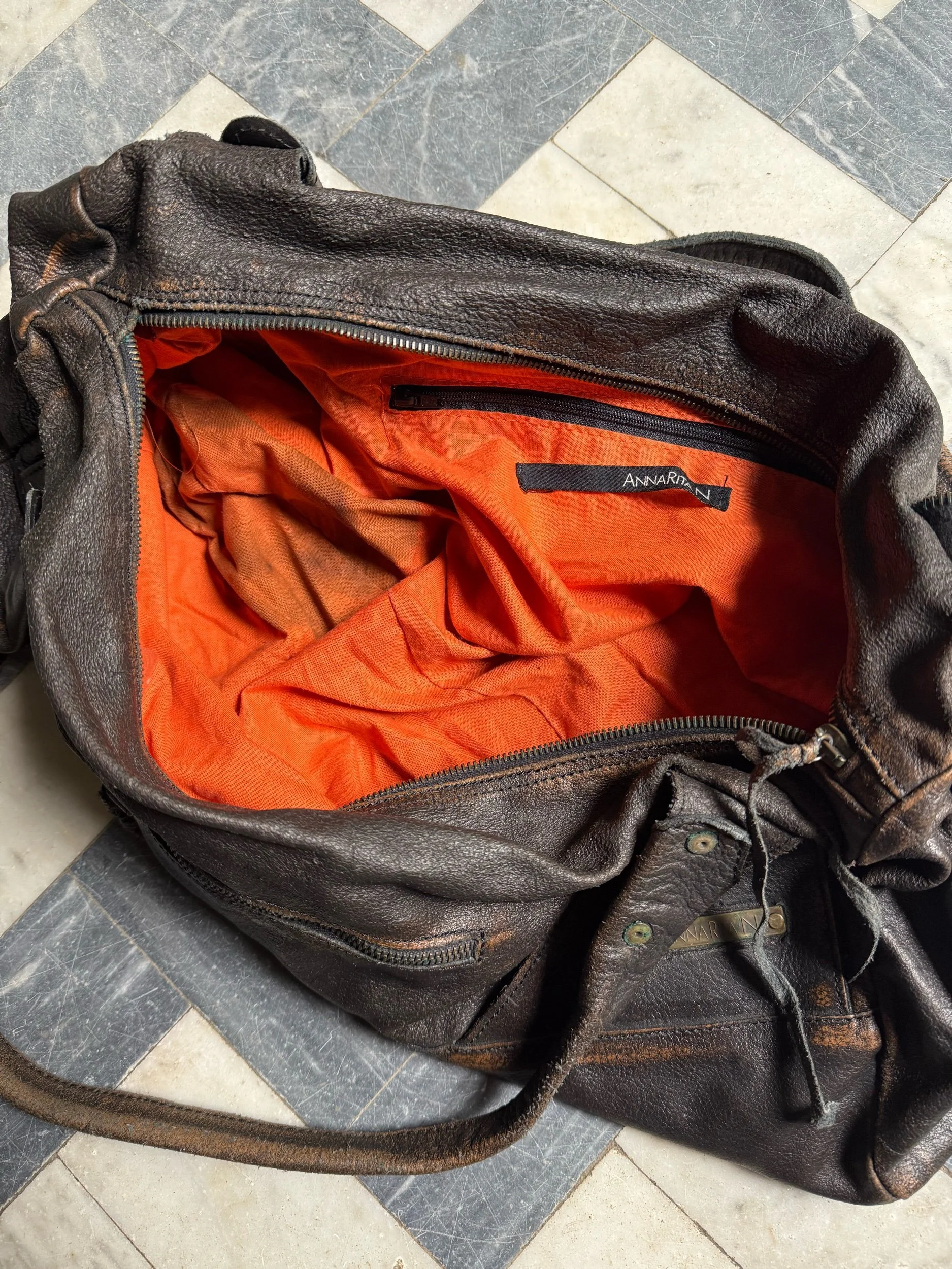 Skick: 8/10 - Kommentar: märken och slitage förekommer i lädret, fläck (foder inuti)